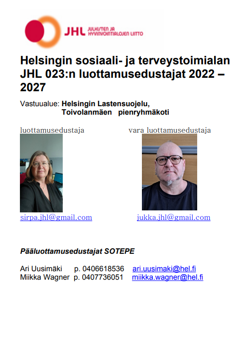 Helsingin sosiaali- ja terveystoimialan JHL 023:n luottamusedustajat 2022 – 2027